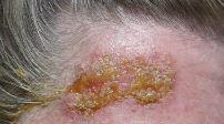 - 수포가 터지고 딱지가 생기며 진물 동반